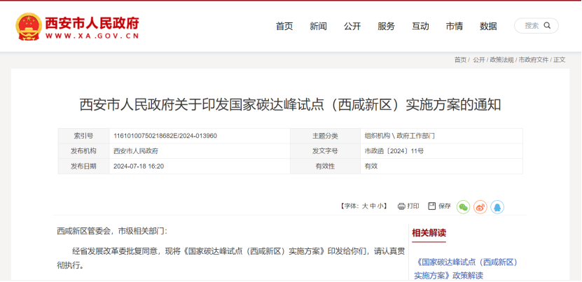 7月19日,西安市人民政府面向西咸新區(qū)管委會,市級相關部門印發(fā)《國家碳達峰試點(西咸新區(qū))實施方案》,聚焦綠色低碳發(fā)展的能源和產業(yè)轉型瓶頸制約,加快提升能源清潔化利用效率、基礎設施綠色低碳化水平和減污降碳協(xié)同能力,全面推動產業(yè)高質量發(fā)展和資源循環(huán)利用。